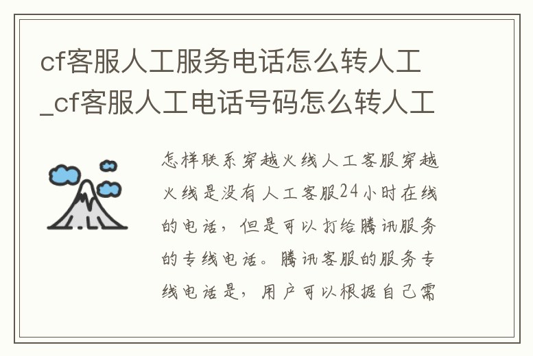 cf客服人工服務(wù)電話怎么轉(zhuǎn)人工_cf客服人工電話號碼怎么轉(zhuǎn)人工服務(wù)