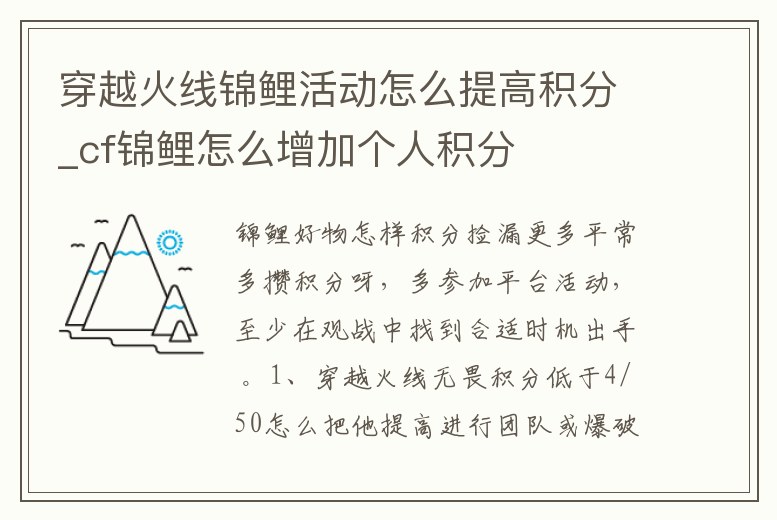 穿越火線錦鯉活動怎么提高積分_cf錦鯉怎么增加個人積分
