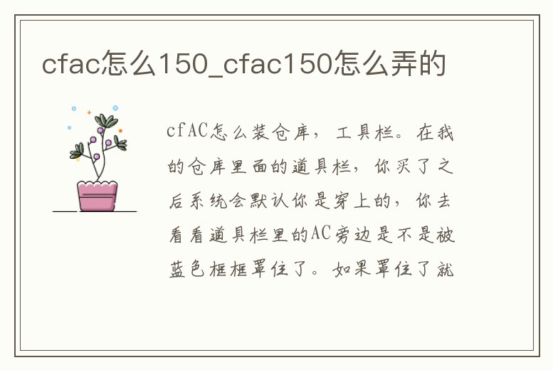 cfac怎么150_cfac150怎么弄的