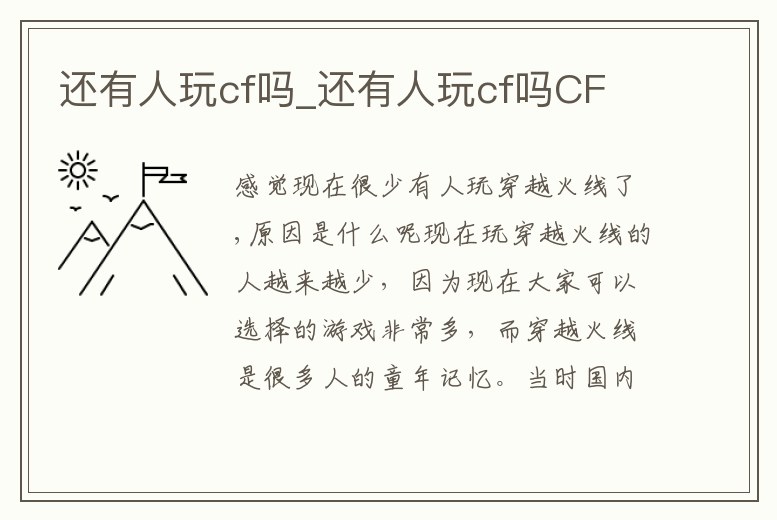 現在玩穿越火線的人越來越少,因為現在大家可以選擇的游戲非常多,而穿越火線是很多人的童年記憶。當時國內的網絡游戲用一只手就能夠數得過來,大家這個會在周六周日的時候,約著自己的朋友一起去網吧打CF。穿越火線是一款射擊。