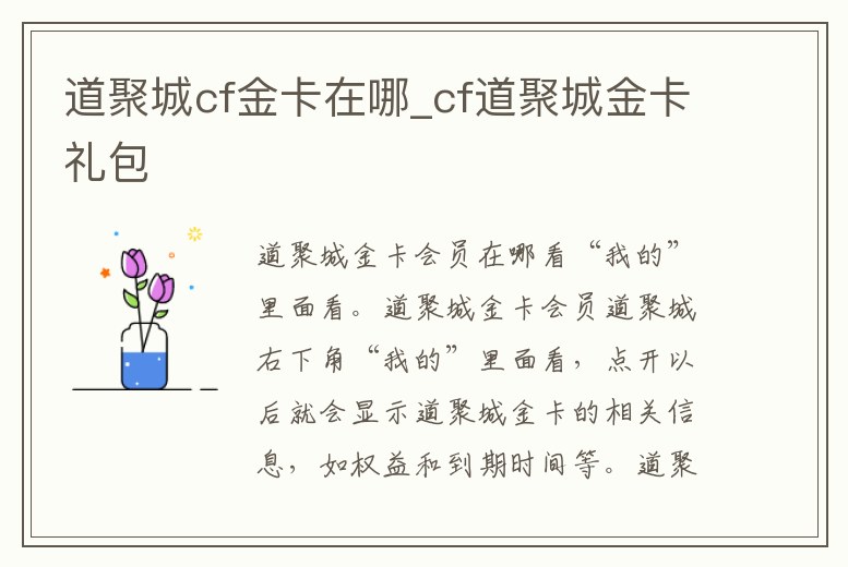 “我的”里面看。道聚城金卡會員道聚城右下角“我的”里面看,點開以后就會顯示道聚城金卡的相關信息,如權益和到期時間等。道聚城是騰訊游戲的官方道具購買在線商城,其網頁的形式使玩家在沒有游戲客戶端的情況下也能瀏。