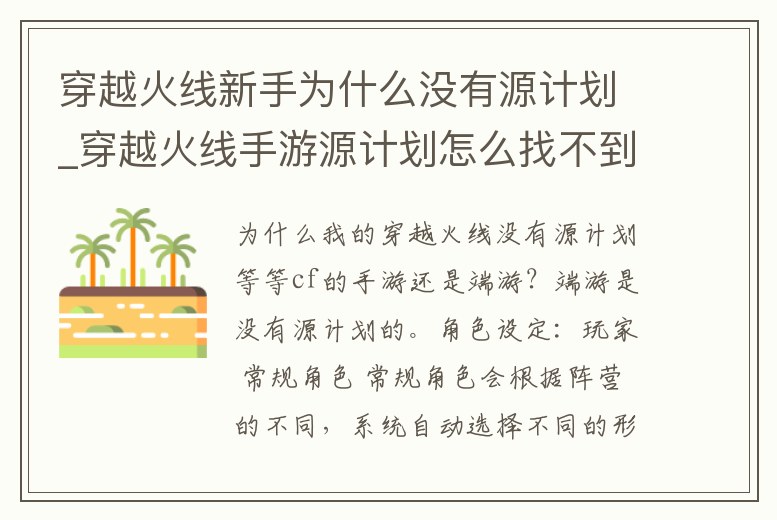 穿越火線新手為什么沒有源計劃_穿越火線手游源計劃怎么找不到了