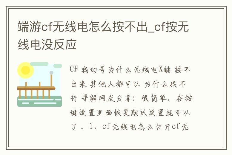 端游cf無線電怎么按不出_cf按無線電沒反應