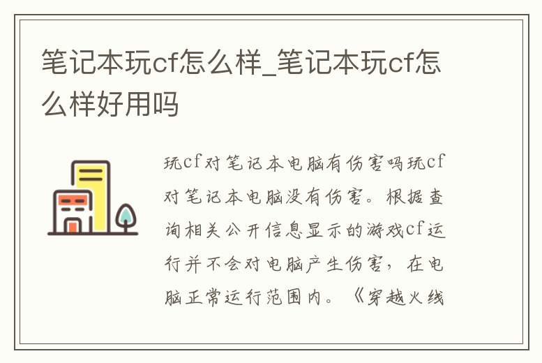 玩cf對(duì)筆記本電腦沒(méi)有傷害。根據(jù)查詢(xún)相關(guān)公開(kāi)信息顯示的游戲cf運(yùn)行并不會(huì)對(duì)電腦產(chǎn)生傷害,在電腦正常運(yùn)行范圍內(nèi)。《穿越火線:槍?xiě)?zhàn)王者》是一款由韓國(guó)Smile gate研發(fā)商及騰訊游戲旗下天美工作室群打造發(fā)布的第一人稱(chēng)射擊類(lèi)手游。