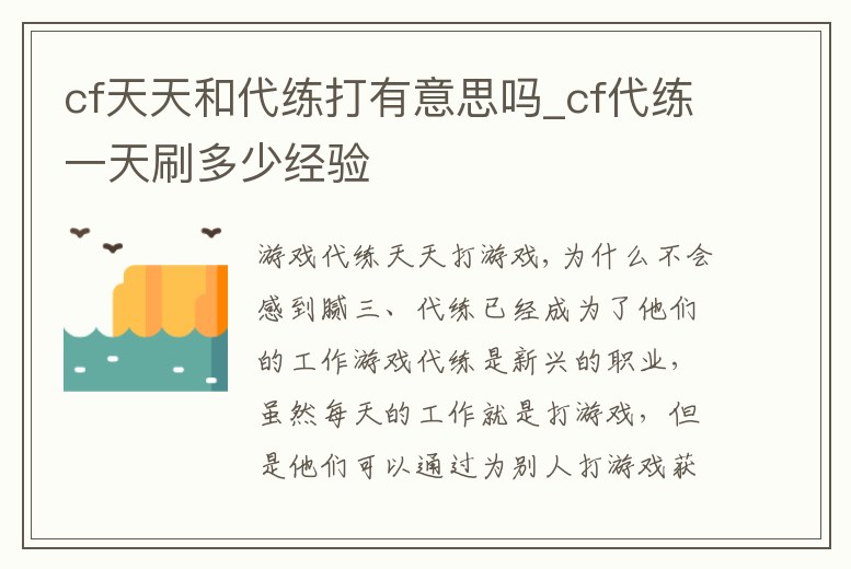 cf天天和代練打有意思嗎_cf代練一天刷多少經驗