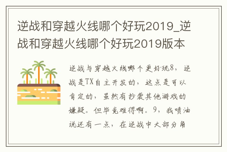 個人表示,逆戰好一點吧,我個人是12年退游火線,12年接觸逆戰,到現在的話,還是覺得逆戰好,15年,18年,20年都會回歸過火線,但是還是想玩逆戰,二者好壞我不說,我只說說我的經歷,小學玩火線,從接觸火線到巨人之城出。