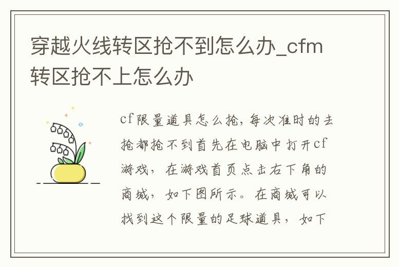 穿越火線轉區搶不到怎么辦_cfm轉區搶不上怎么辦