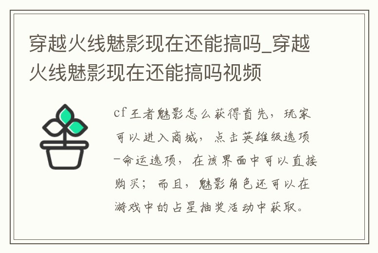穿越火線(xiàn)魅影現(xiàn)在還能搞嗎_穿越火線(xiàn)魅影現(xiàn)在還能搞嗎視頻