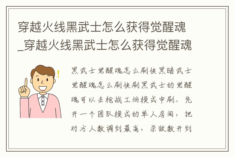 - 穿越火線黑武士怎么獲得覺醒魂_穿越火線黑武士怎么獲得覺醒魂魄