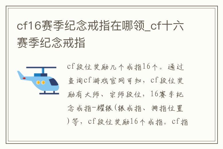 - cf16賽季紀(jì)念戒指在哪領(lǐng)_cf十六賽季紀(jì)念戒指