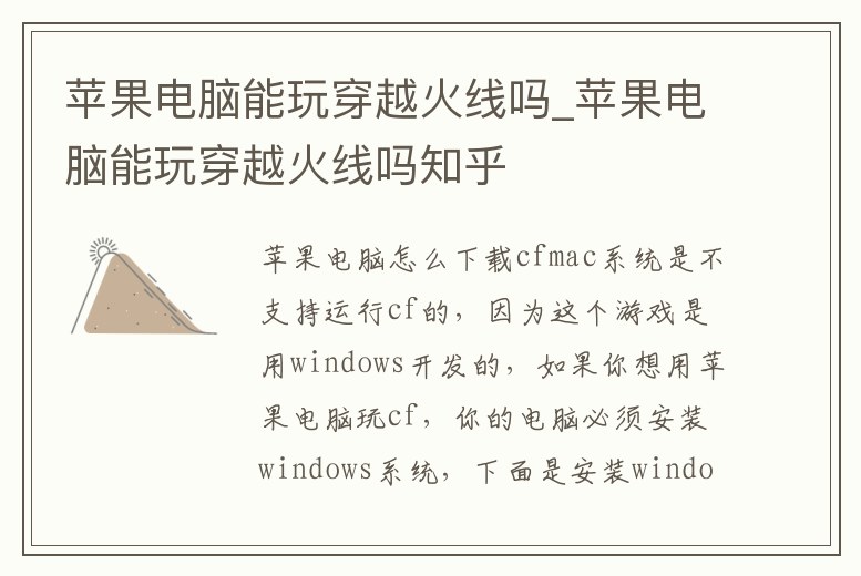 蘋果電腦能玩穿越火線嗎_蘋果電腦能玩穿越火線嗎知乎