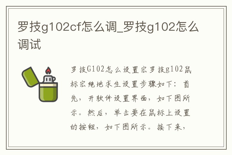 羅技g102鼠標宏絕地求生設置步驟如下:首先,開軟件設置界面,如下圖所示。然后,單擊要在鼠標上設置的按鈕,如下圖所示。接下來,選擇配置文件并雙擊以打開它,如下圖所示。然后,將鼠標指針放在任意鍵上。
