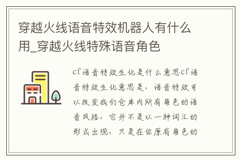 - 穿越火線語音特效機(jī)器人有什么用_穿越火線特殊語音角色