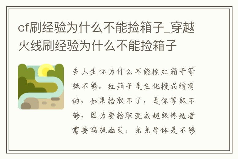 cf刷經驗為什么不能撿箱子_穿越火線刷經驗為什么不能撿箱子