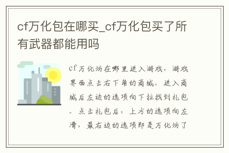 - cf萬化包在哪買_cf萬化包買了所有武器都能用嗎