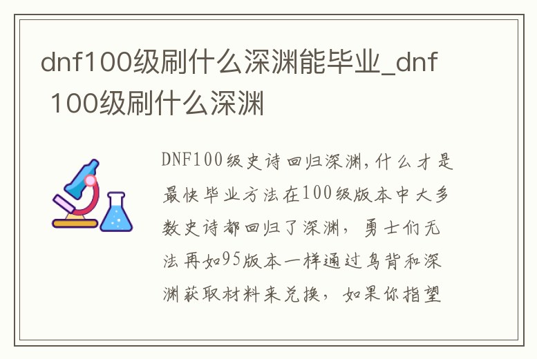 dnf100級刷什么深淵能畢業_dnf 100級刷什么深淵