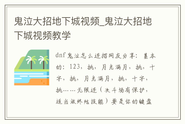 鬼泣大招地下城視頻_鬼泣大招地下城視頻教學