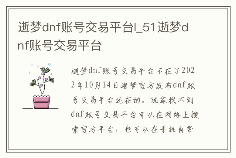 逝夢dnf賬號交易平臺l_51逝夢dnf賬號交易平臺