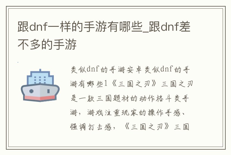 安卓類似dnf的手游有哪些1《三國之刃》三國之刃是一款三國題材的動作格斗類手游,游戲注重玩家的操作手感、強調打擊感,《三國之刃》三國之刃是一款三國題材的動作格斗類手游,游戲注重玩家的操作手感、強調打擊感,同時又具有。