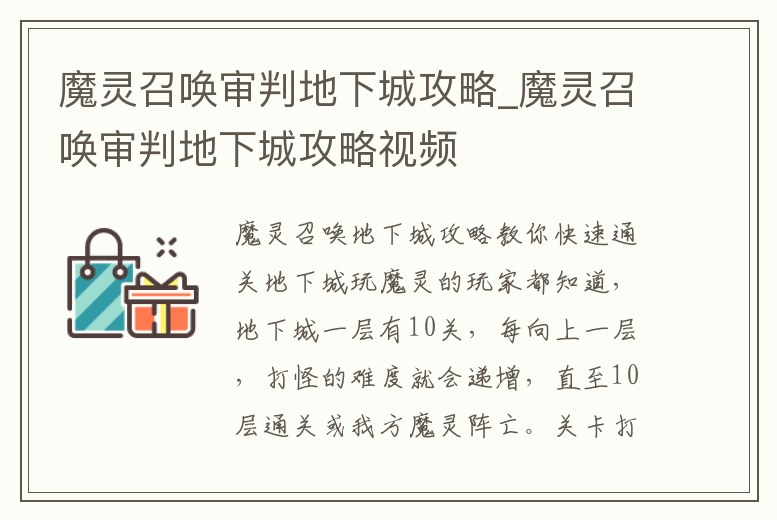 - 魔靈召喚審判地下城攻略_魔靈召喚審判地下城攻略視頻