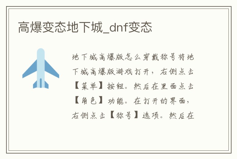 地下城高爆版怎么穿戴稱號