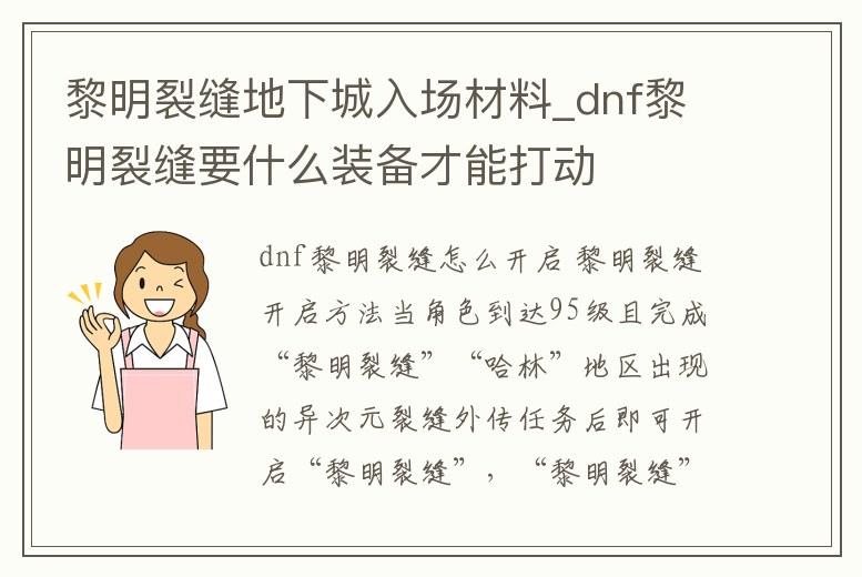 黎明裂縫地下城入場材料_dnf黎明裂縫要什么裝備才能打動