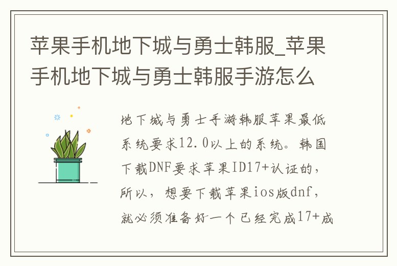 12.0以上的系統。韓國下載DNF要求蘋果ID17+認證的,所以,想要下載蘋果ios版dnf,就必須準備好一個已經完成17+成年認證的韓國蘋果ID。