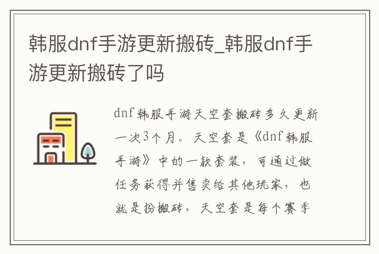 韓服dnf手游更新搬磚_韓服dnf手游更新搬磚了嗎