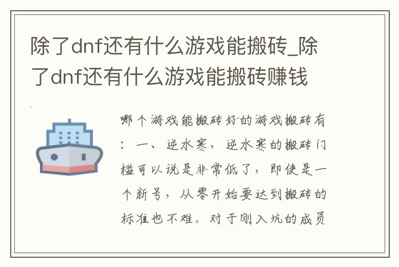 除了dnf還有什么游戲能搬磚_除了dnf還有什么游戲能搬磚賺錢
