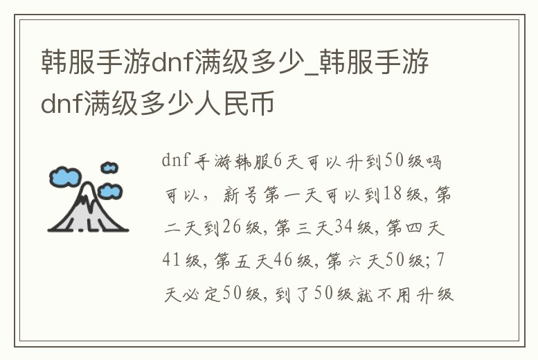 韓服手游dnf滿級多少_韓服手游dnf滿級多少人民幣