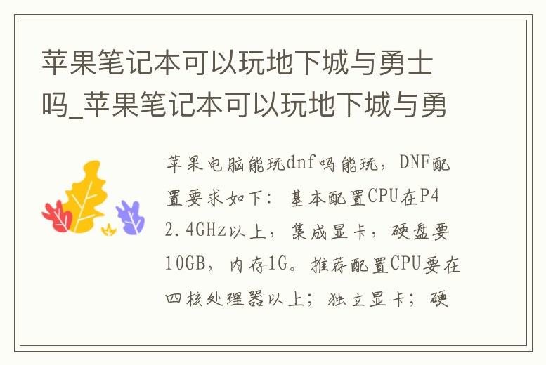 - 蘋果筆記本可以玩地下城與勇士嗎_蘋果筆記本可以玩地下城與勇士嗎