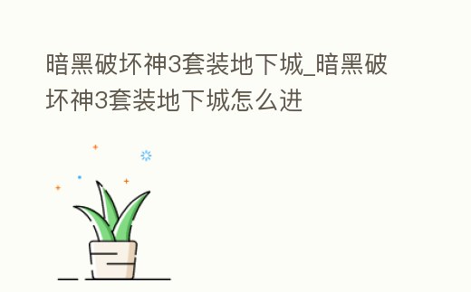 暗黑破壞神3套裝地下城_暗黑破壞神3套裝地下城怎么進