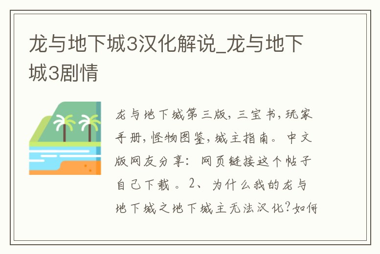 2、為什么我的龍與地下城之地下城主無法漢化?如何解決
