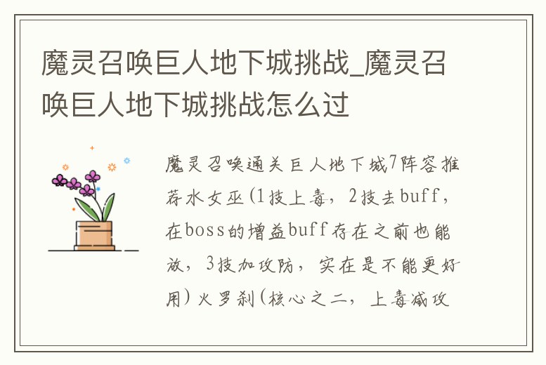 - 魔靈召喚巨人地下城挑戰(zhàn)_魔靈召喚巨人地下城挑戰(zhàn)怎么過(guò)