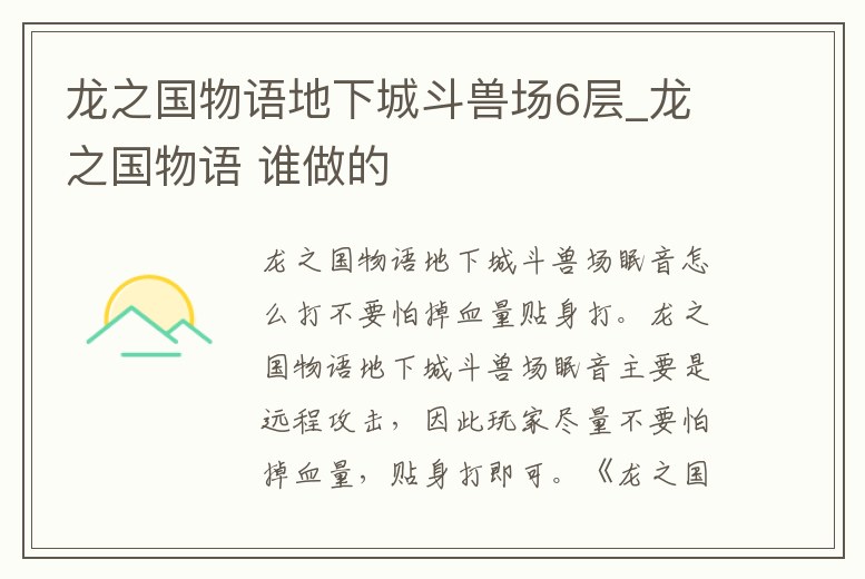不要怕掉血量貼身打。龍之國物語地下城斗獸場眠音主要是遠程攻擊,因此玩家盡量不要怕掉血量,貼身打即可。《龍之國物語》是締夢社工作室設計的一款3D熱血冒險題材的MMORPG游戲。