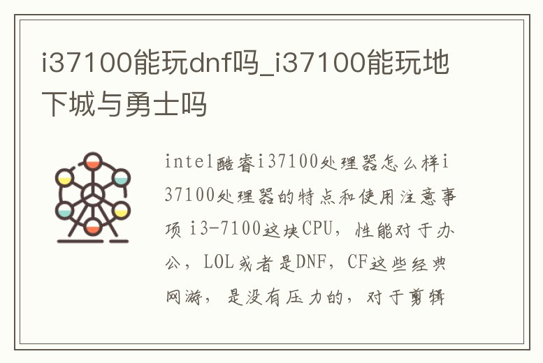 i37100能玩dnf嗎_i37100能玩地下城與勇士嗎