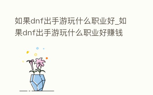 如果dnf出手游玩什么職業好_如果dnf出手游玩什么職業好賺錢