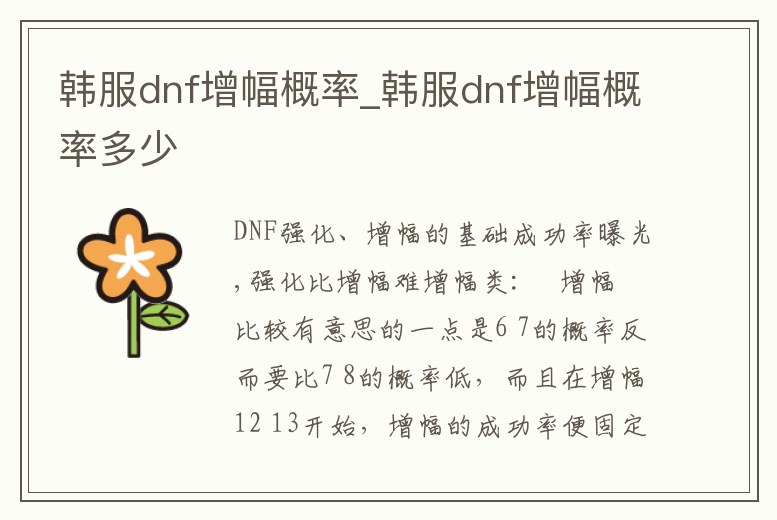 韓服dnf增幅概率_韓服dnf增幅概率多少
