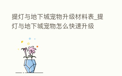 提燈與地下城寵物升級材料表_提燈與地下城寵物怎么快速升級
