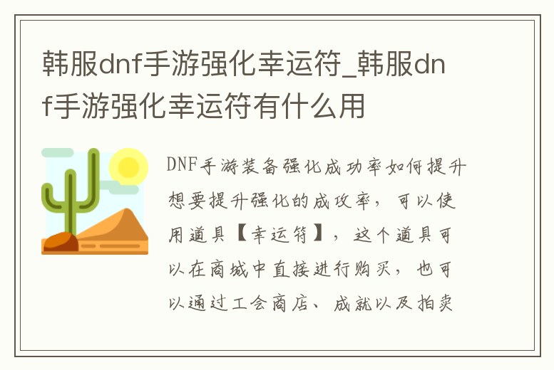 韓服dnf手游強化幸運符_韓服dnf手游強化幸運符有什么用