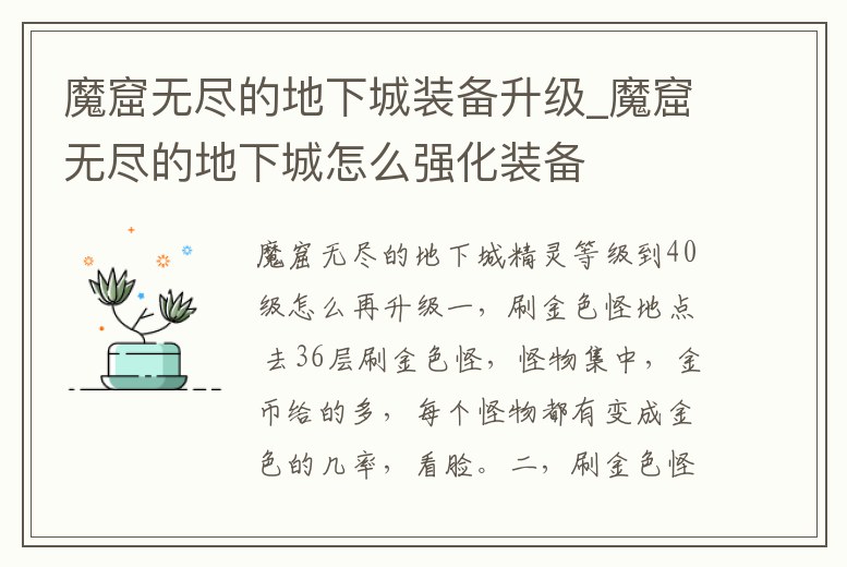- 魔窟無(wú)盡的地下城裝備升級(jí)_魔窟無(wú)盡的地下城怎么強(qiáng)化裝備