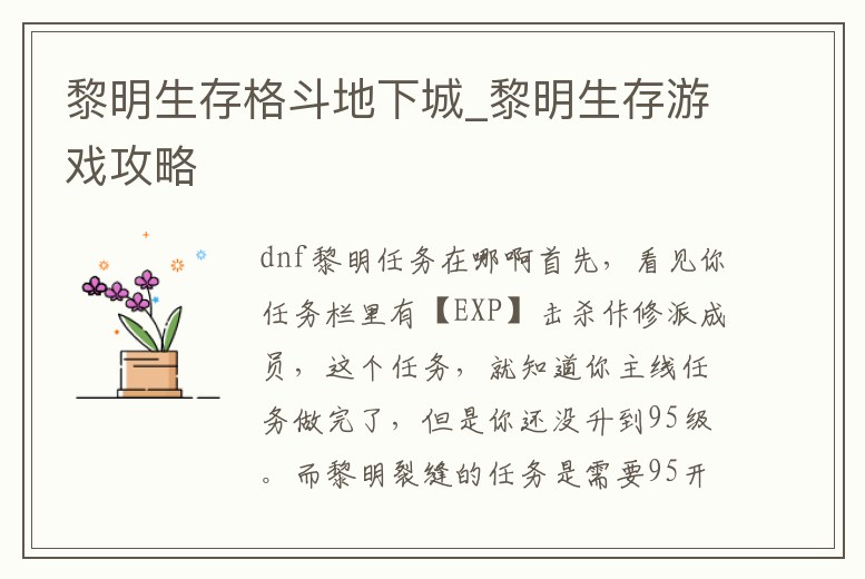首先,看見你任務欄里有【EXP】擊殺佧修派成員,這個任務,就知道你主線任務做完了,但是你還沒升到95級。而黎明裂縫的任務是需要95開啟的,所以任務列表里面并沒有屬于黎明裂縫的任務。那么,如何快速升到95呢,開頭說到。