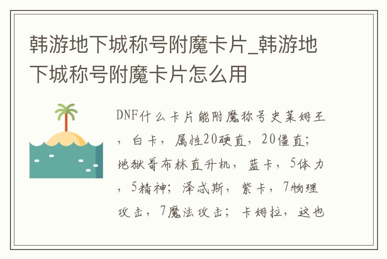 韓游地下城稱號附魔卡片_韓游地下城稱號附魔卡片怎么用