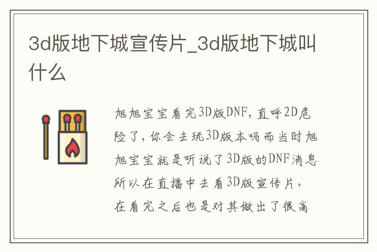 旭旭寶寶看完3D版DNF,直呼2D危險了,你會去玩3D版本嗎而當時旭旭寶寶就是聽說了3D版的DNF消息所以在直播中去看3D版宣傳片,在看完之后也是對其做出了很高的評價,但是你要說旭旭寶寶會去玩嗎?我看不見的,因