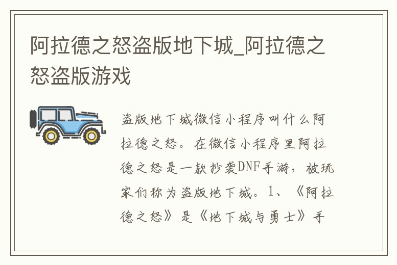 阿拉德之怒。在微信小程序里阿拉德之怒是一款抄襲DNF手游,被玩家們稱為盜版地下城。