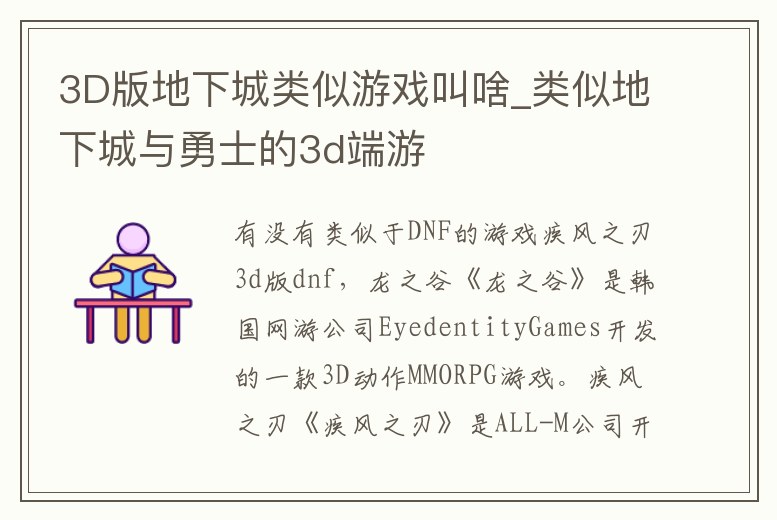 有沒有類似于DNF的游戲疾風之刃3d版dnf,龍之谷《龍之谷》是韓國網游公司EyedentityGames開發的一款3D動作MMORPG游戲。疾風之刃《疾風之刃》是ALL-M公司開發的一款漫畫風格的3D動作類角色扮演