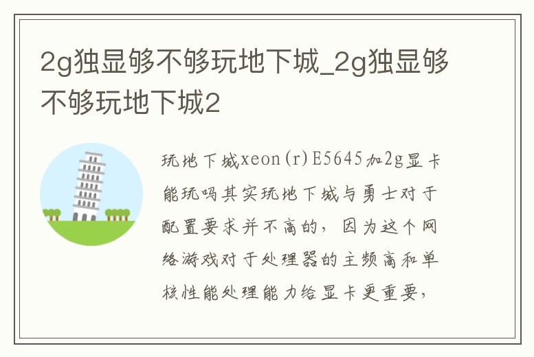 2g獨顯夠不夠玩地下城_2g獨顯夠不夠玩地下城2