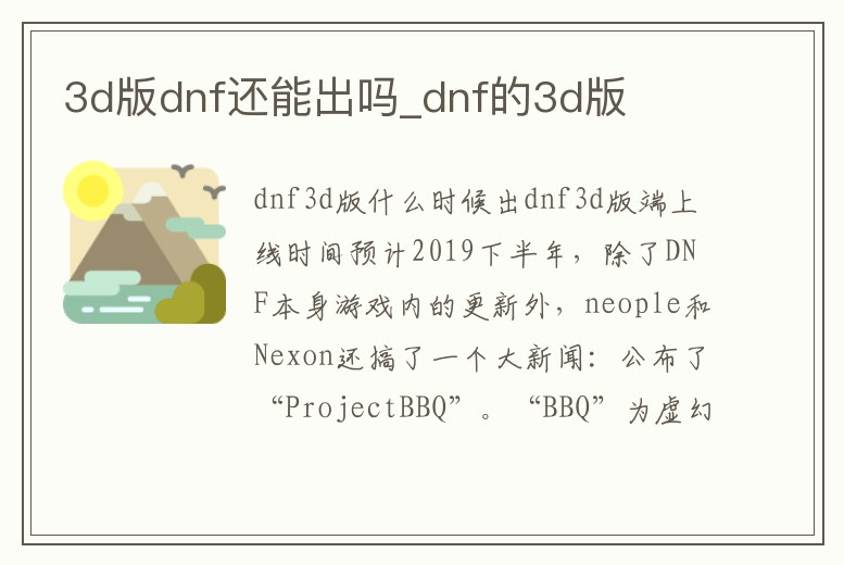 dnf3d版什么時候出