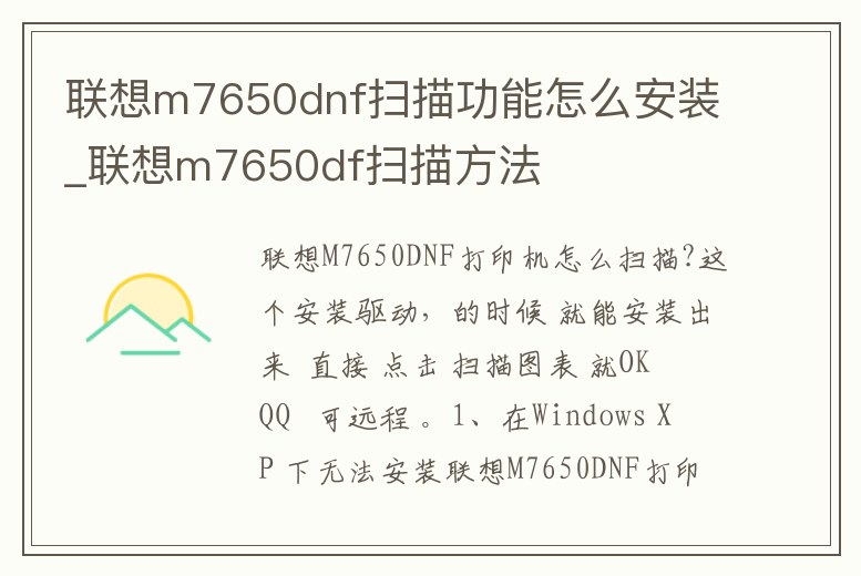 聯想m7650dnf掃描功能怎么安裝_聯想m7650df掃描方法