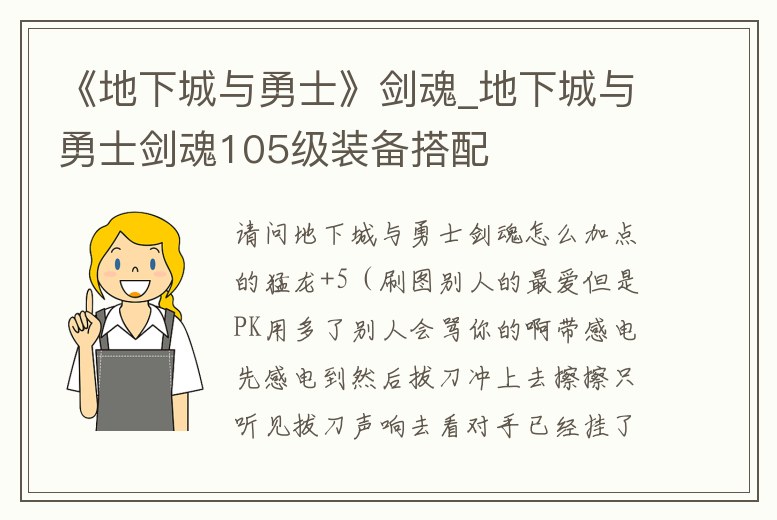 《地下城與勇士》劍魂_地下城與勇士劍魂105級裝備搭配